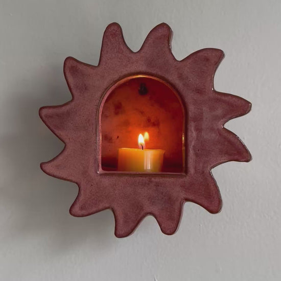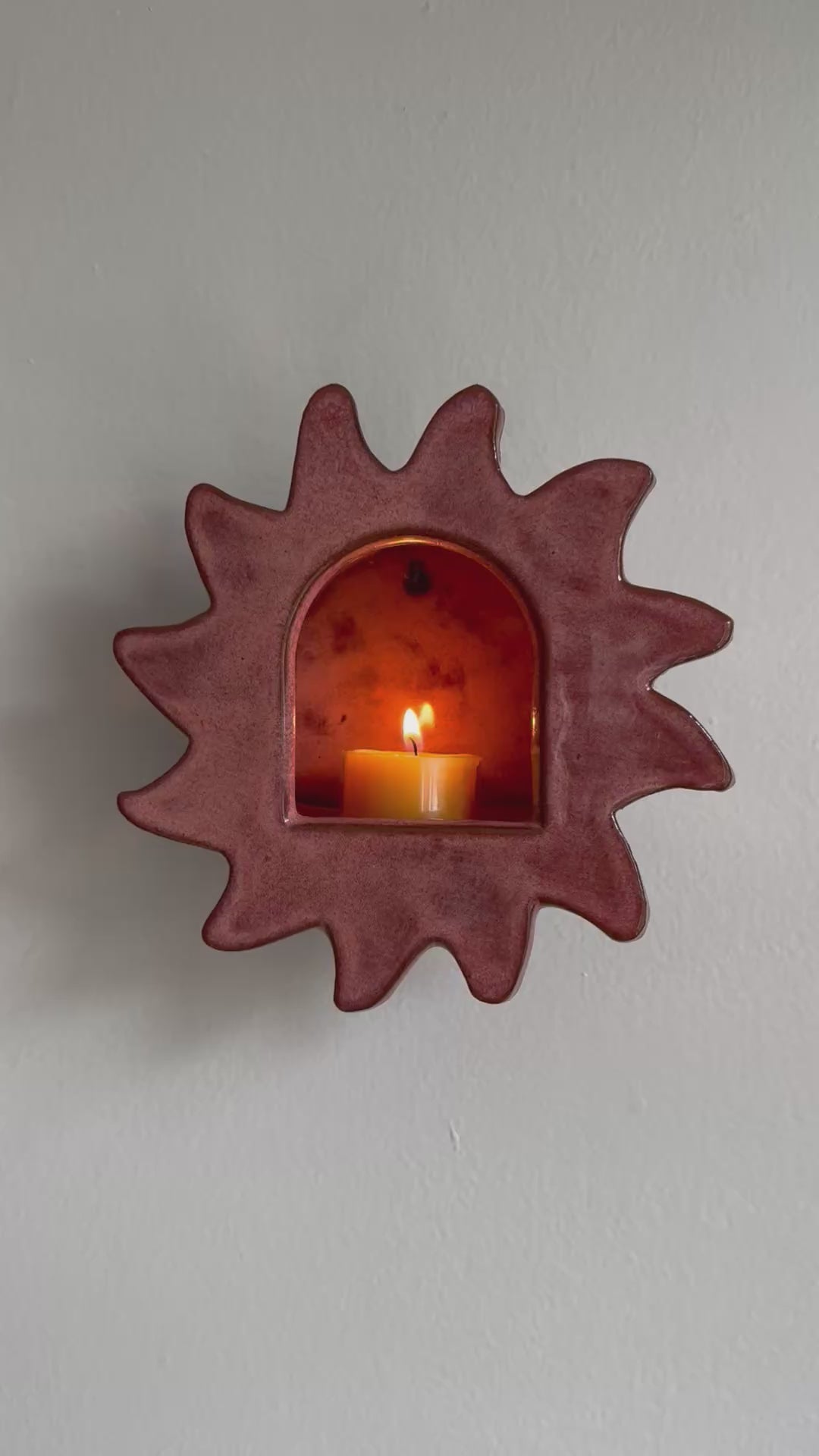 Sunset glaze on dark stoneware. Perfectly fits a tealight and has keyhole for installation. Each item is handmade one by one and may slightly vary.