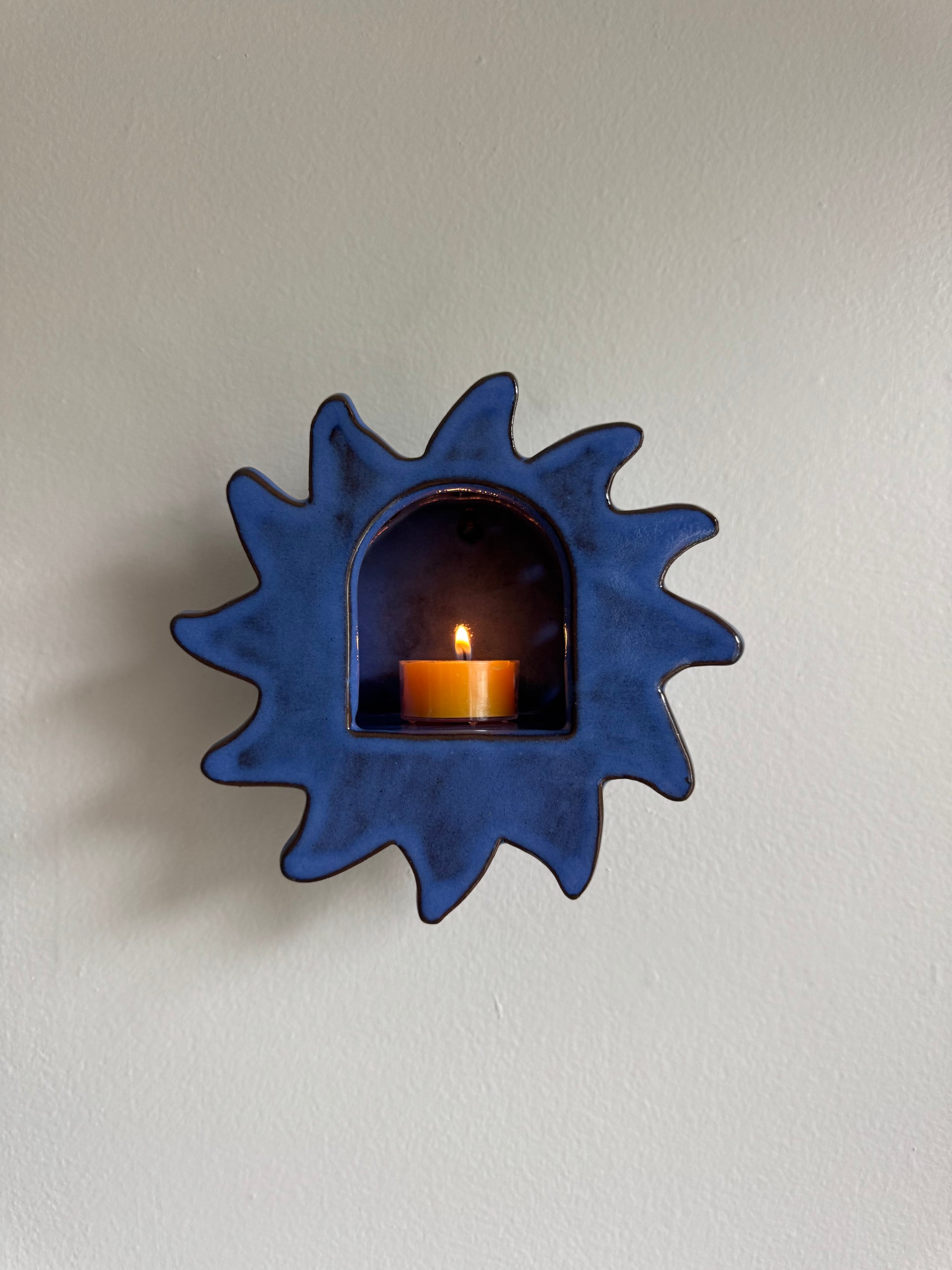 New color! Large stormy blue sun tealight sconce.About 7x7 inches.
