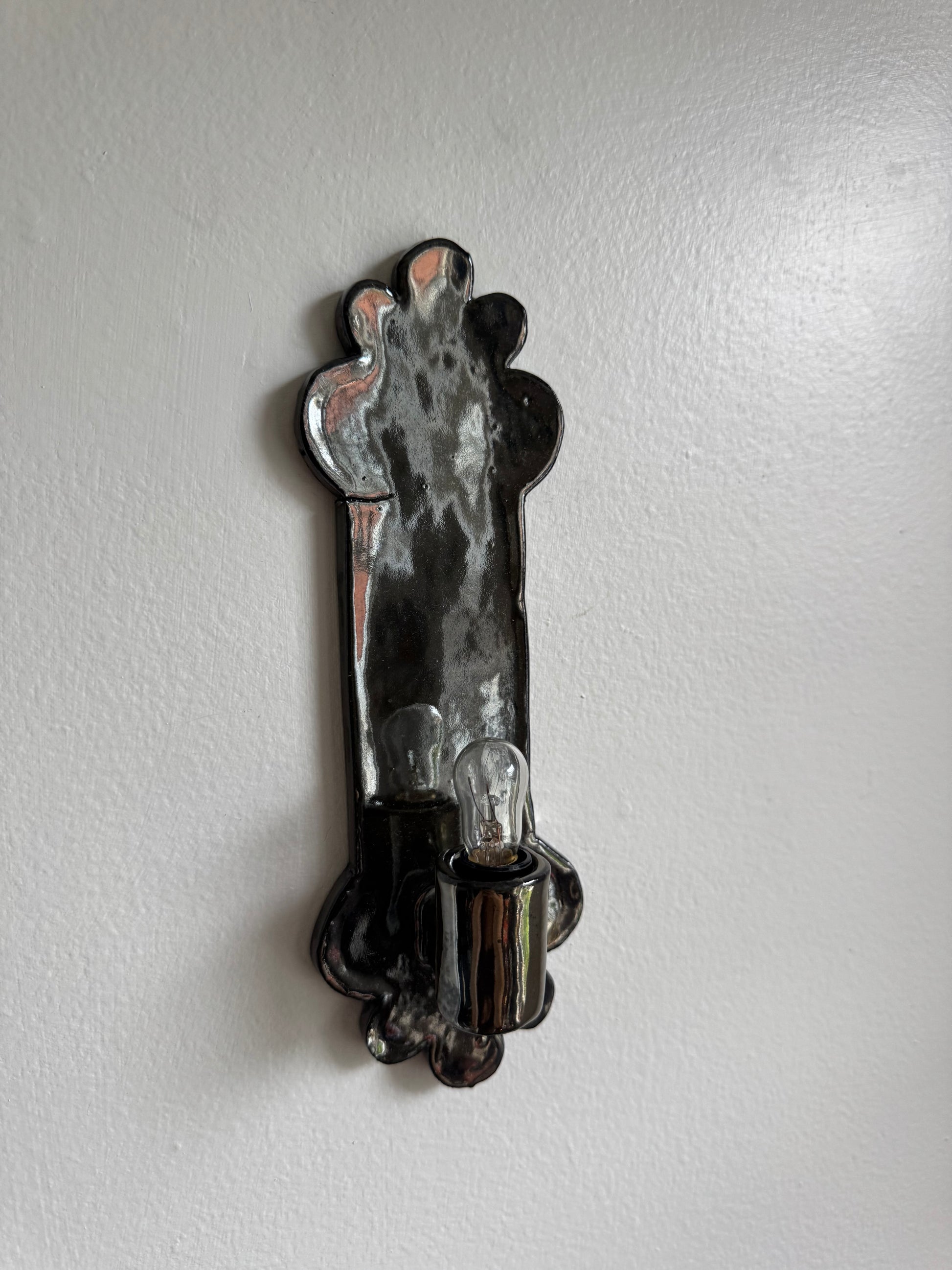 Has slight crack in the top. Can function as a candle holder or hardwired sconce. Does not come with internal wiring.